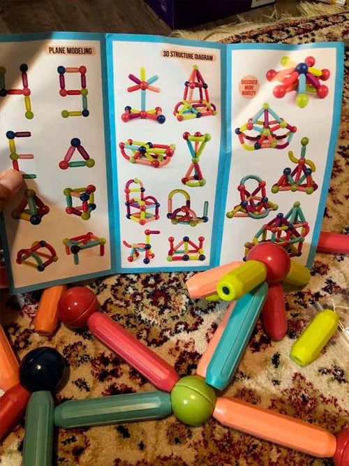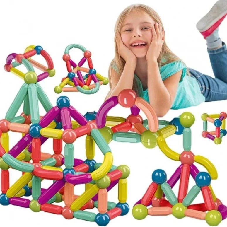 Ez a mágneses játékkészlet ösztönzi a térbeli gondolkodást, fejleszti a szem-kéz koordinációt, és szabadságot ad a gyerekeknek, hogy különböző formákat építsenek, például autókat, állatokat, házakat vagy bármi mást, ami felkelti a képzelőerejüket és érdeklődésüket.