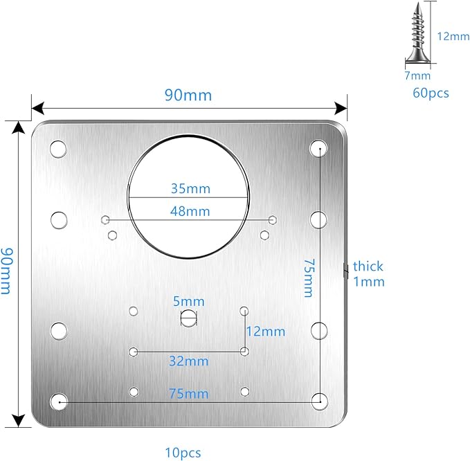 Tartalom: 1 zsanér javító lemez + 4 rozsdamentes acél csavar.